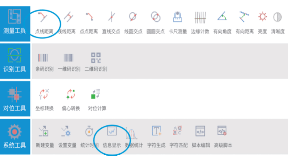 相机视觉处理软件在满足OCR场景开箱即用的基础上,预设50种工具(如直线检测、线线距离、特征匹配等)及多种场景功能包(如测量、统计等场景),用户通过拖拽式编程,即可完成新功能的逻辑搭建,支持自定义功能开发,无需等待厂家开发,满足客户更多想象;